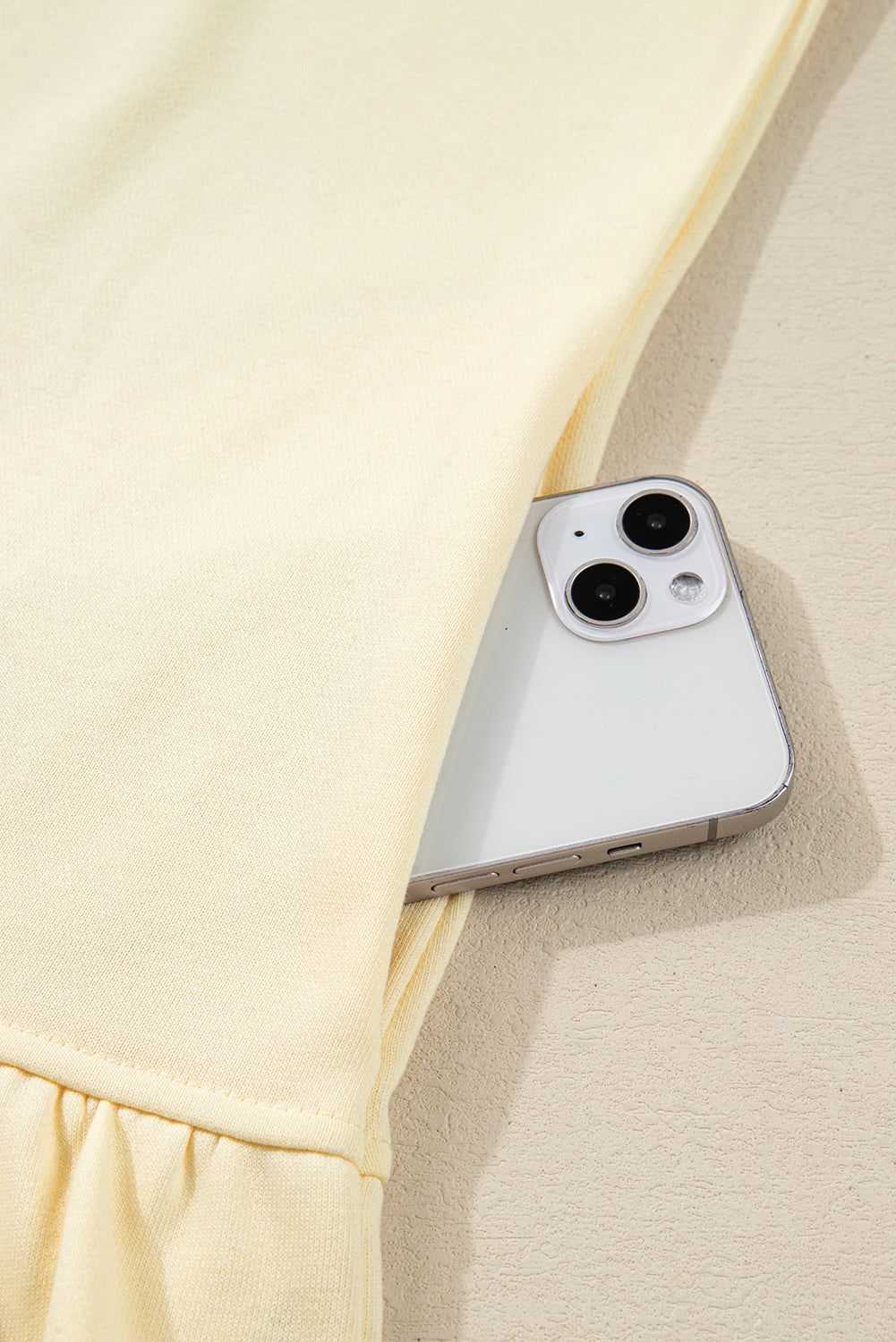 This beige mini dress combines casual comfort with feminine style. Its loose fit and drop shoulder design offer an easy, relaxed look, while the tiered ruffled hem adds a charming touch. Perfect for everyday wear, this versatile dress suits a variety of occasions with a subtle slouchy vibe.