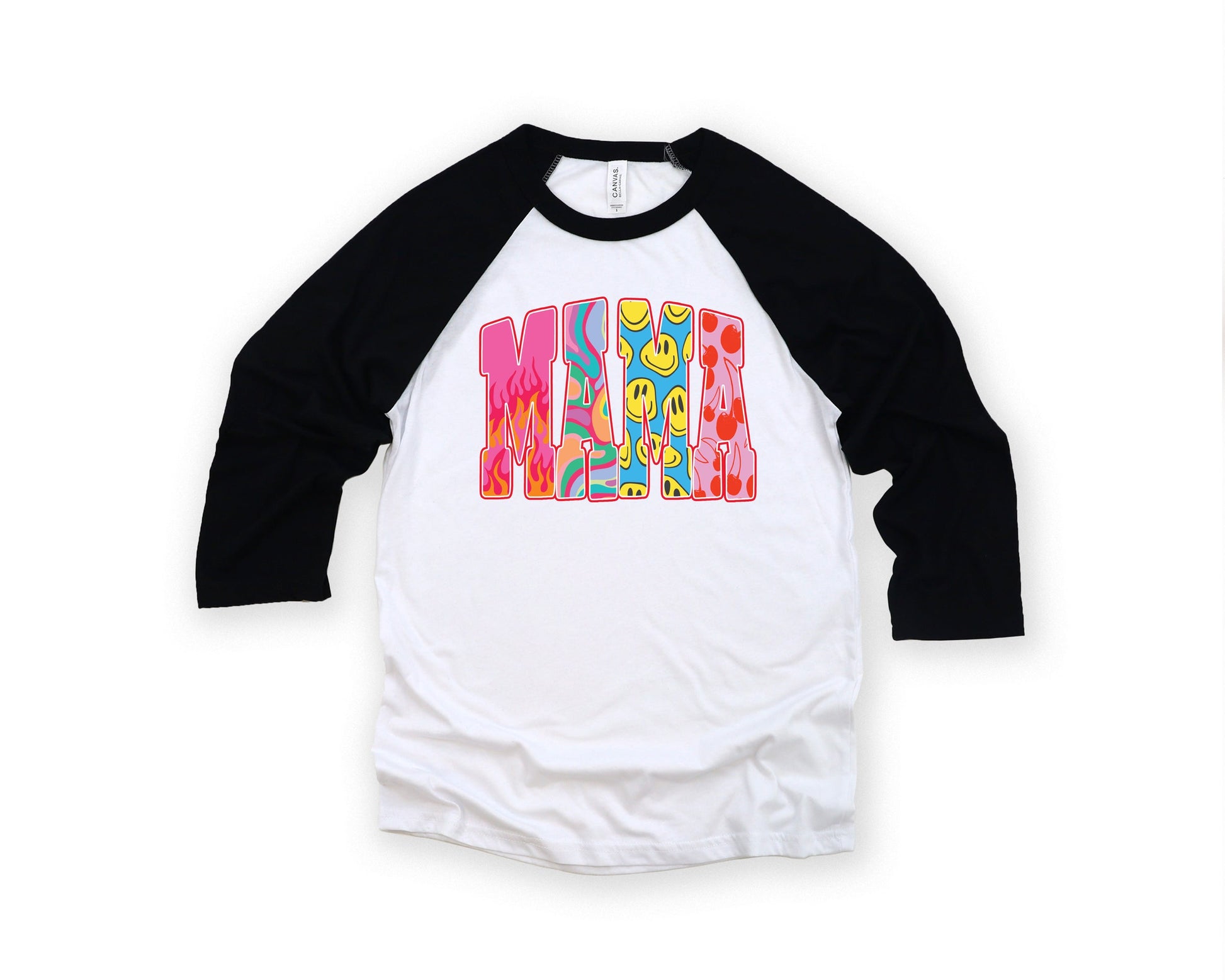 - Classic white body with contrasting black sleeves for sporty, flattering baseball-style fit