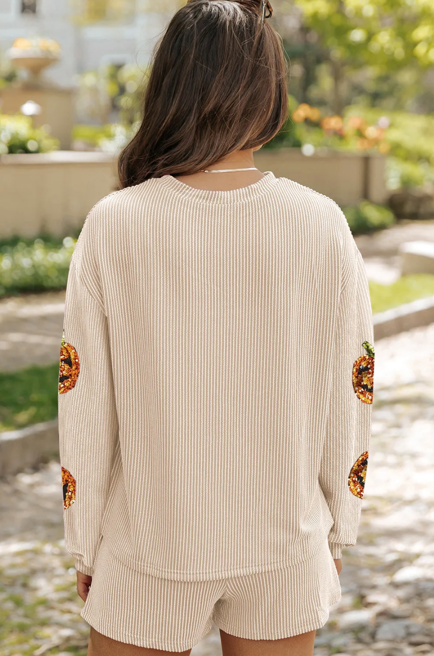 Celebrate the season in style with the Parchment Halloween Sequin Pumpkin Corded Two Piece Shorts Set. Featuring festive pumpkin sequins and a comfortable corded design, this set combines playful charm with easy wearability. Perfect for lounging or casual outings, it offers a fun, seasonal look that keeps you feeling cozy and festive all day.